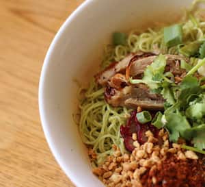 Order Now Contact US. Anyway i cant believe nobody has written a review about this place yet. Green egg noodles with BBQ pork roast duck and crab meat topped with ground peanuts and Thai chili powder.